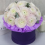 17 белых ранункулюсов в шляпной коробке в Ломоносове