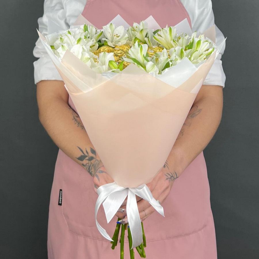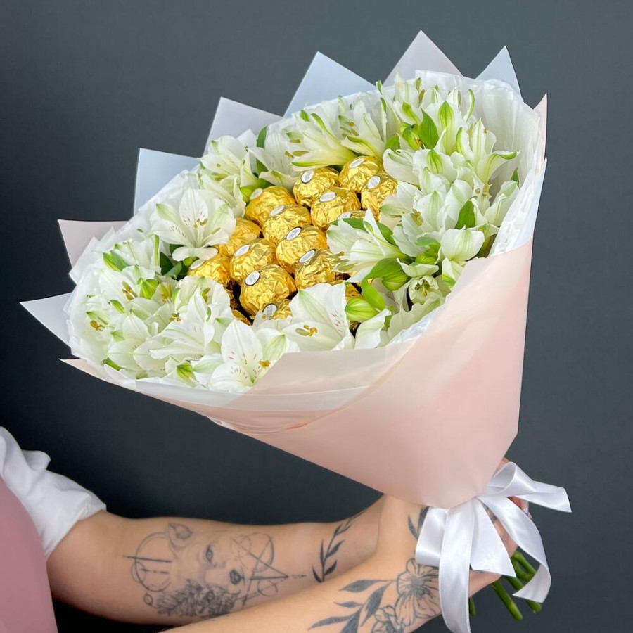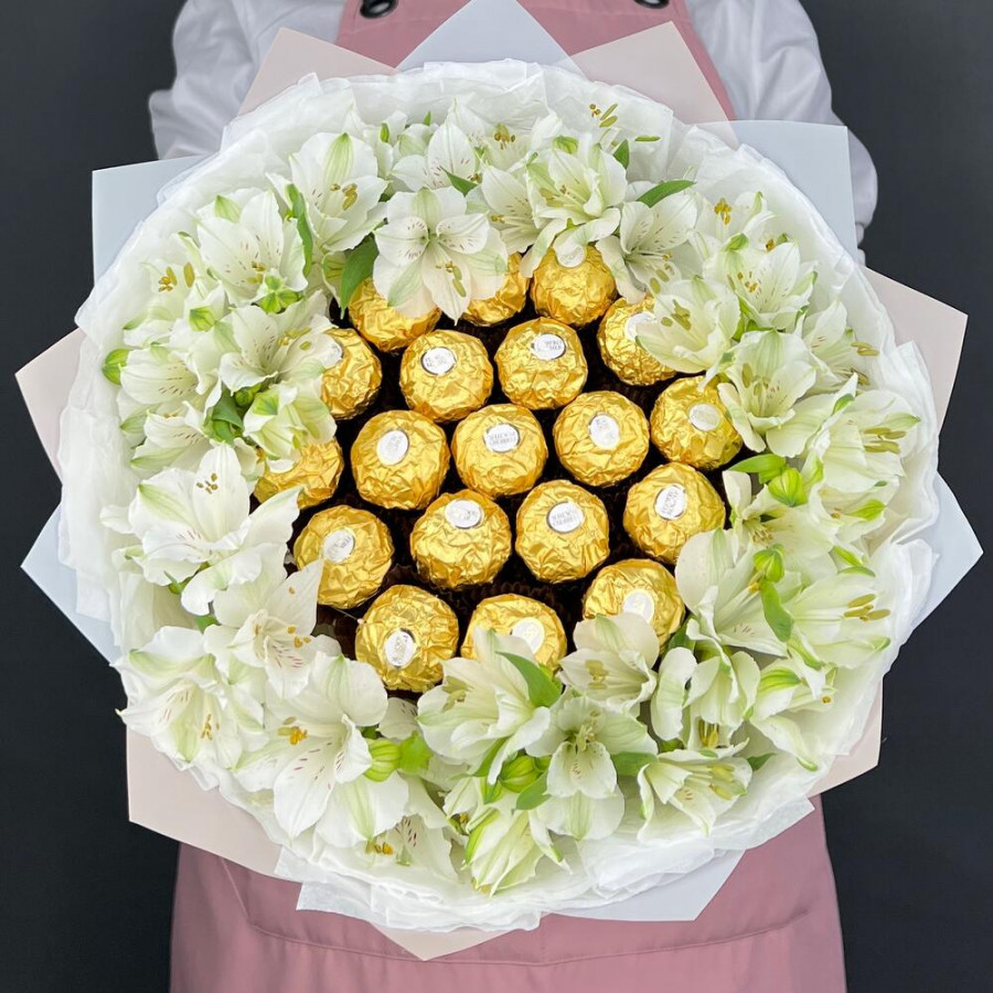 Букет из конфет Ferrero Rocher и и альстромерии в Ломоносове